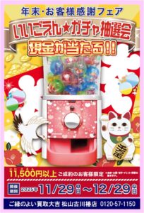 年末☆お客様感謝フェア・現金が当たるガチャ抽選会を開催いたします!🥰
